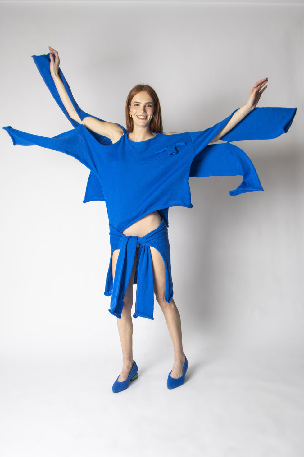 Despite being an adult, I still hold onto the sense of wonder and joy I experienced during my childhood. From a sweater made entirely out of miniature machine knit sweaters to a dress crocheted out of Perler Beads The A. Duckman collection is a tribute to this idea. The inspiration for this collection came from my favorite toys and crafts growing up. The result was brought to life through both domestic and Dubied knitting machines and by hand through crocheting and hand sewing. Draping sessions were an important part of this process as they were used to inform the silhouettes of most garments. The collection incorporates a range of natural fibers, such as merino wool and mohair, and more unconventional materials, such as Perler beads, to create playful and repetitive designs. Overall, the A.Duckman collection is a testament to the power of childhood imagination and the beauty of holding onto a sense of wonder throughout life. My designs invite wearers to tap into their youthful spirits and embrace the joy and playfulness like has to offer.